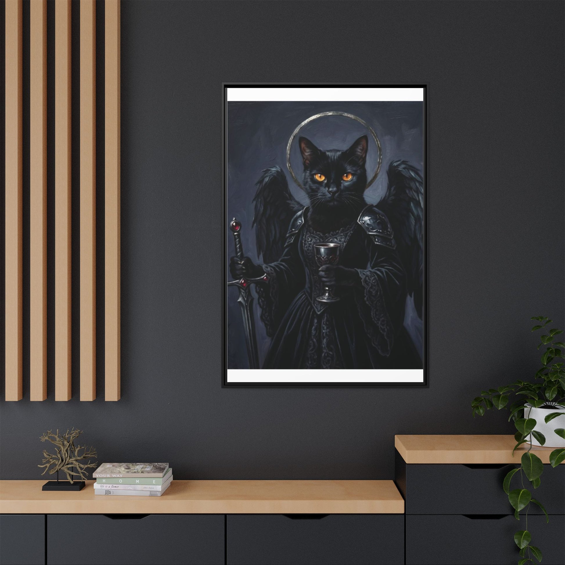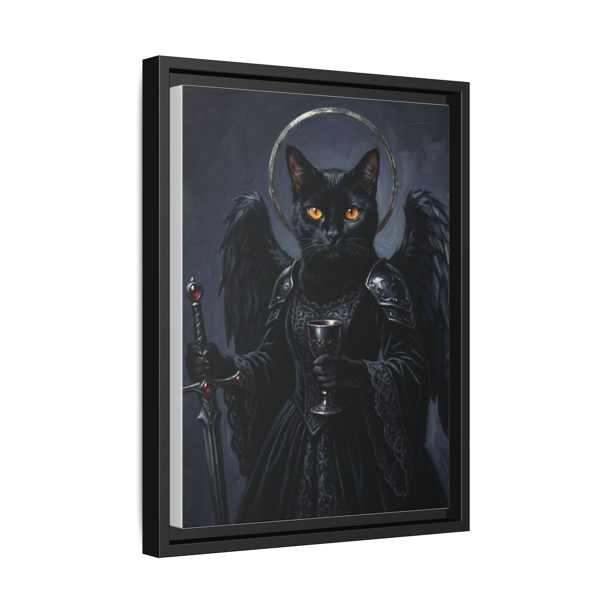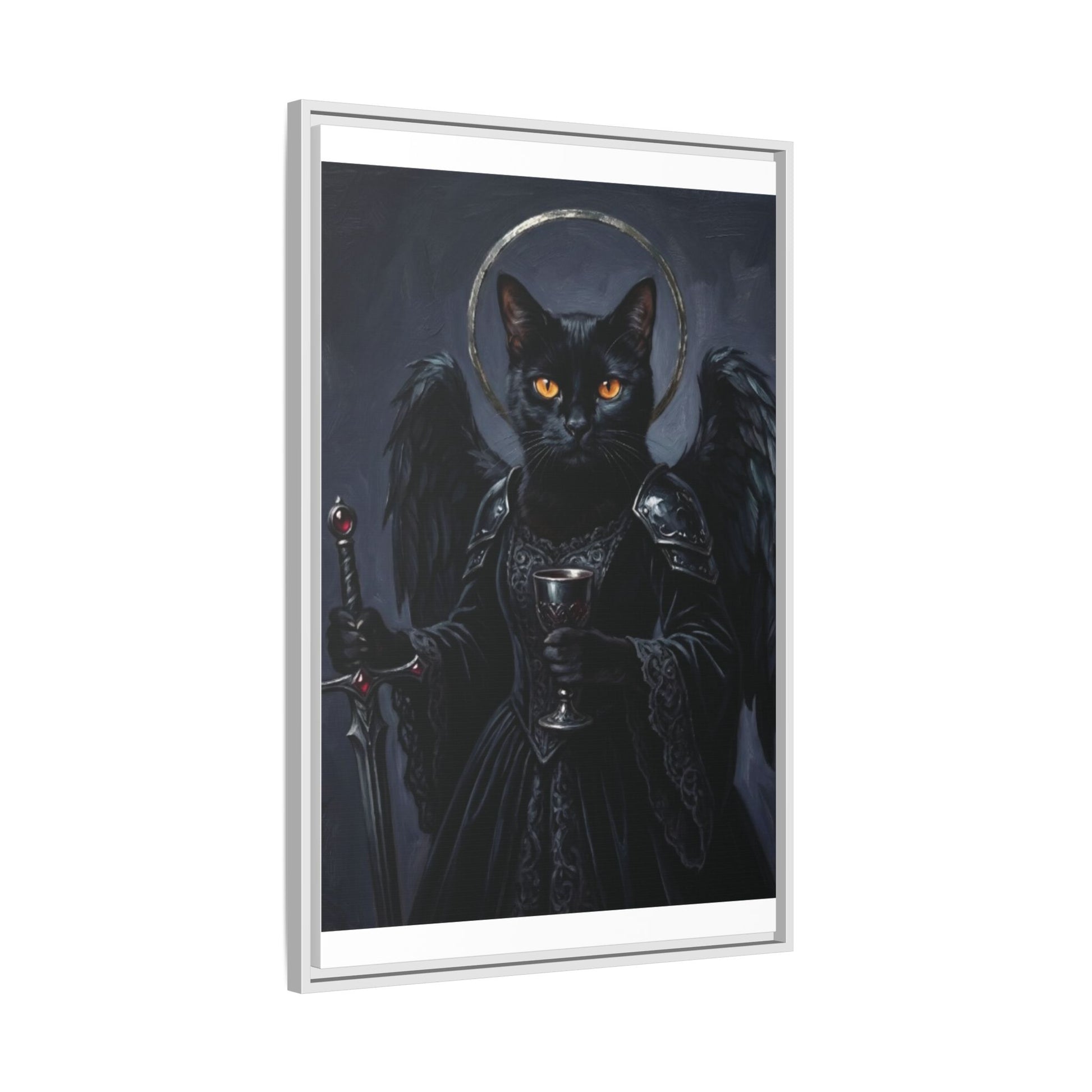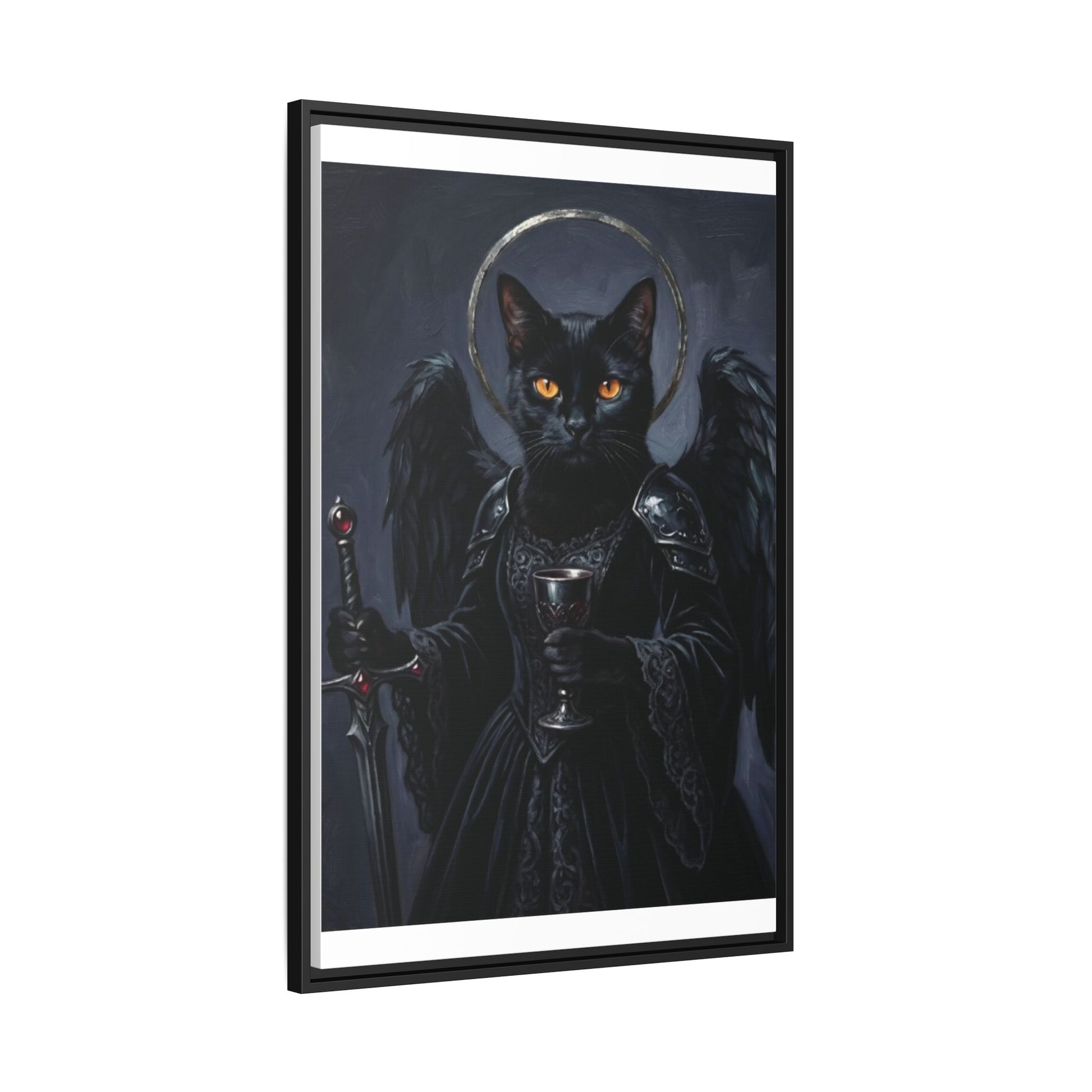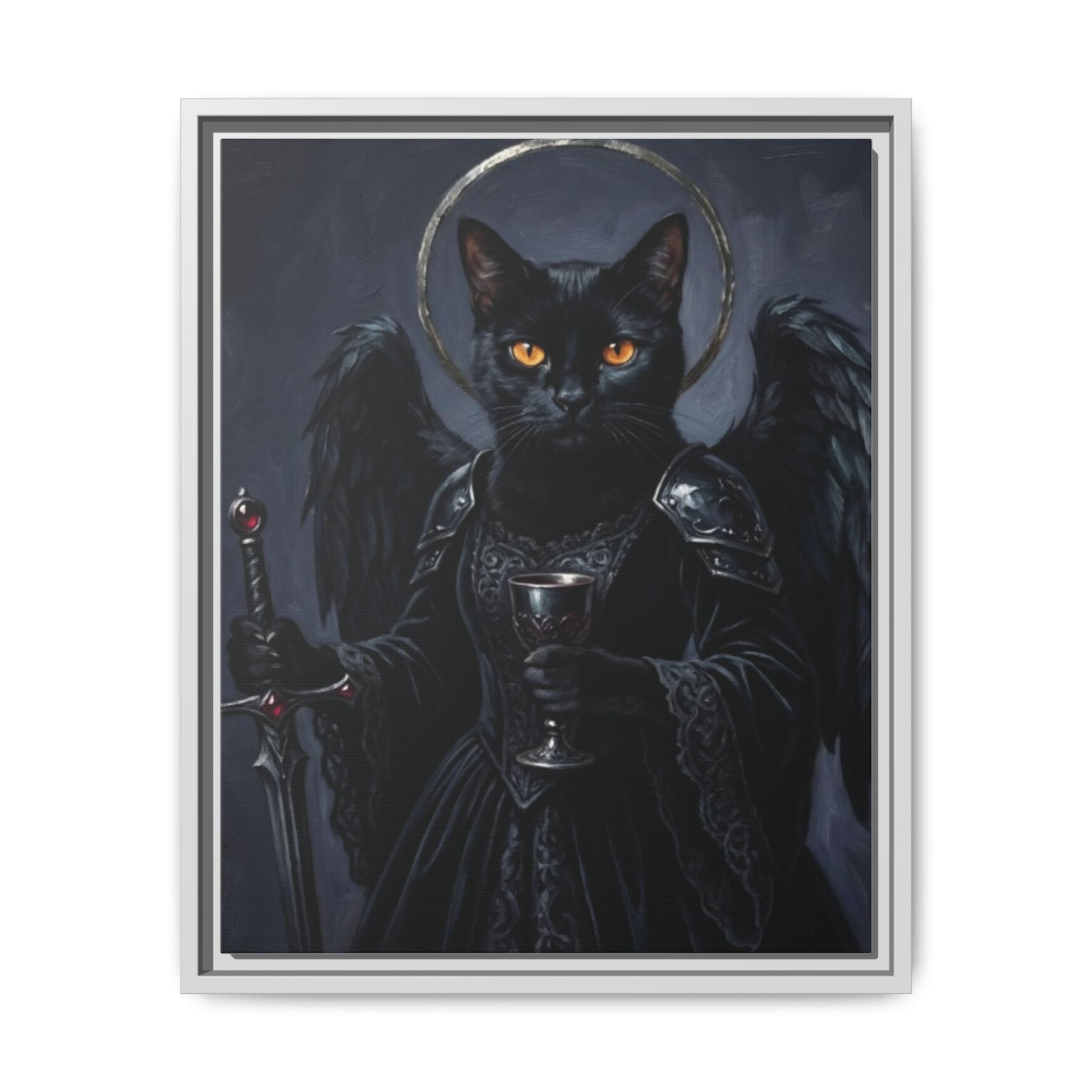 Gothic Black Cat with Halo & Chalice